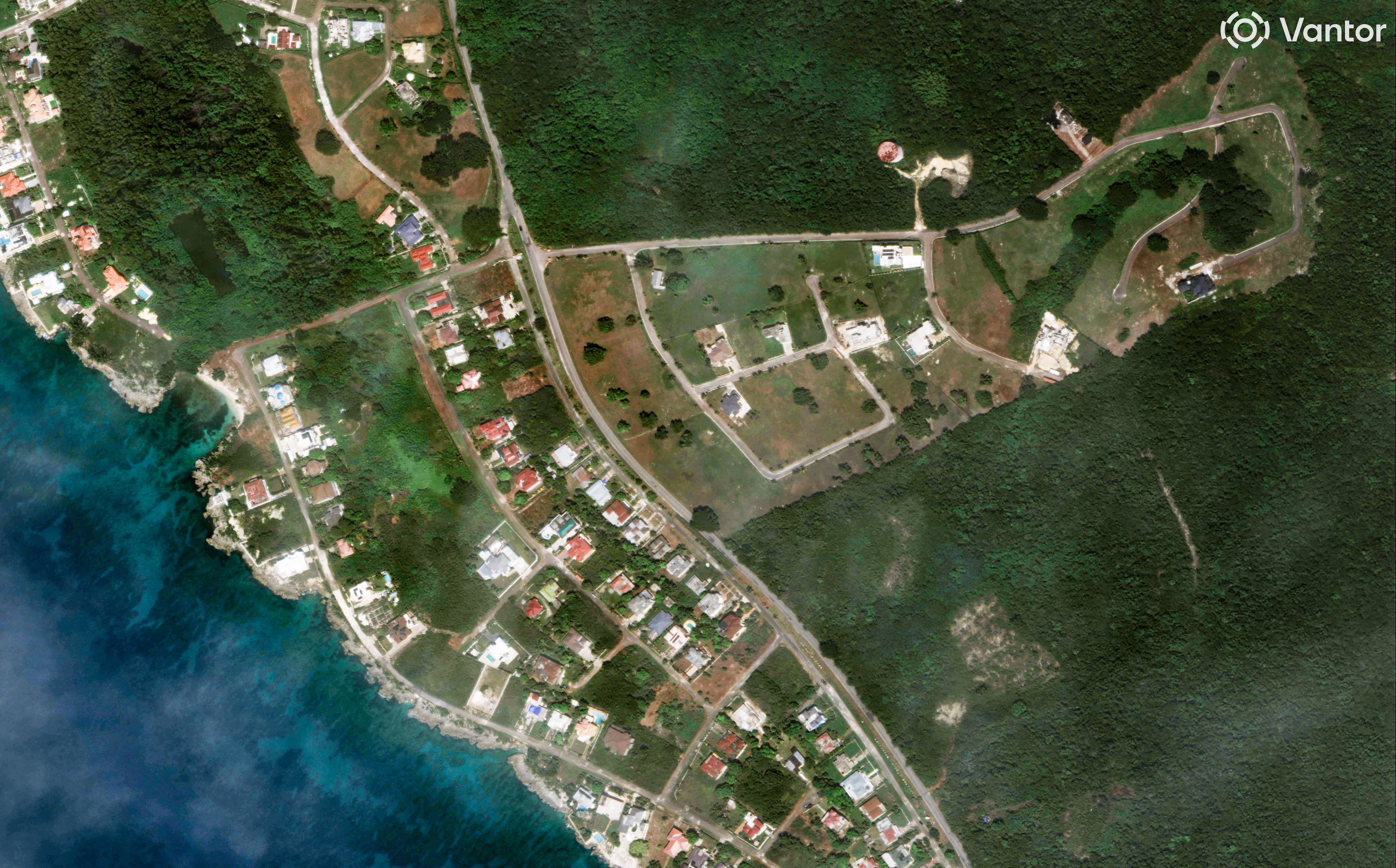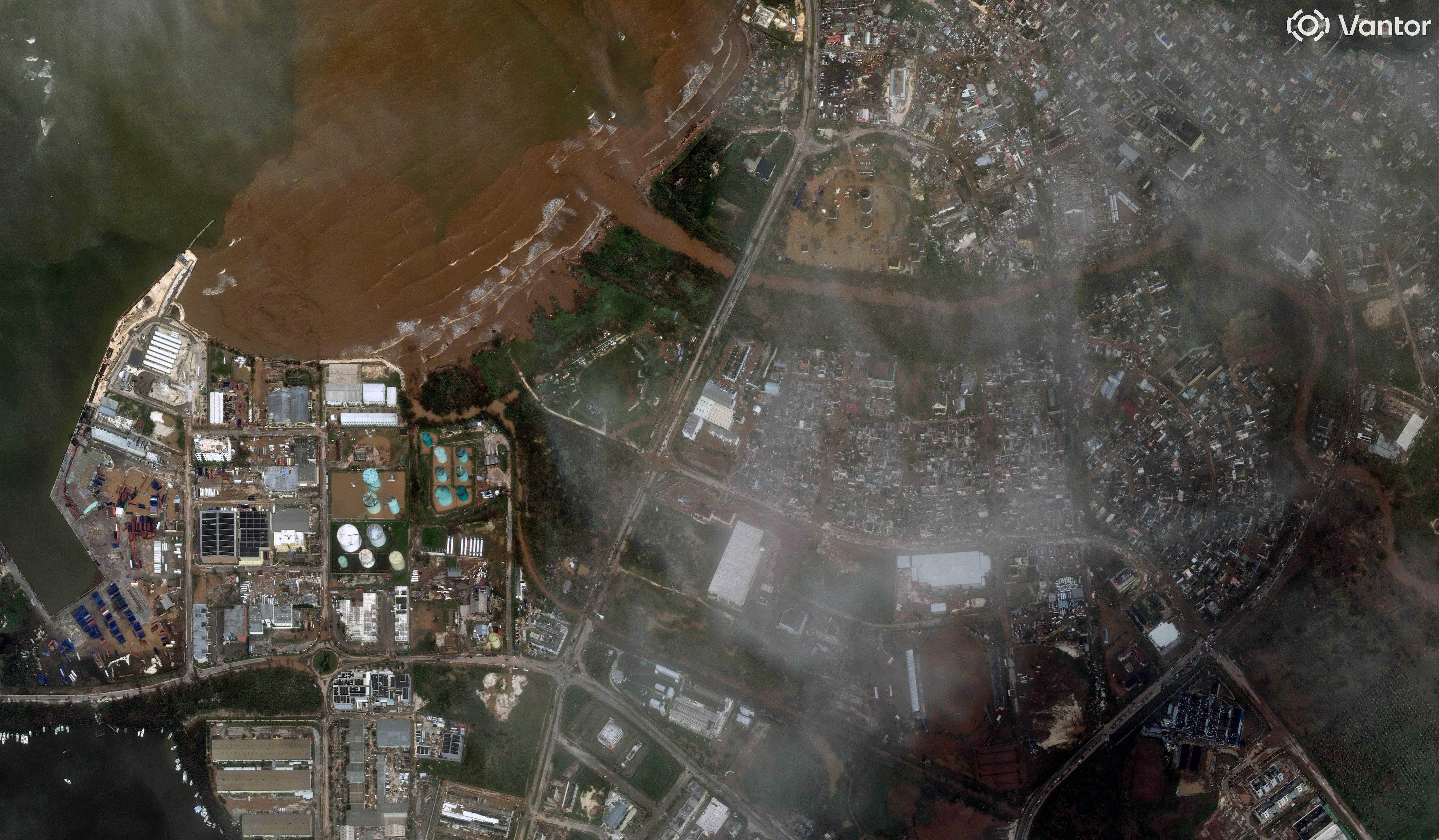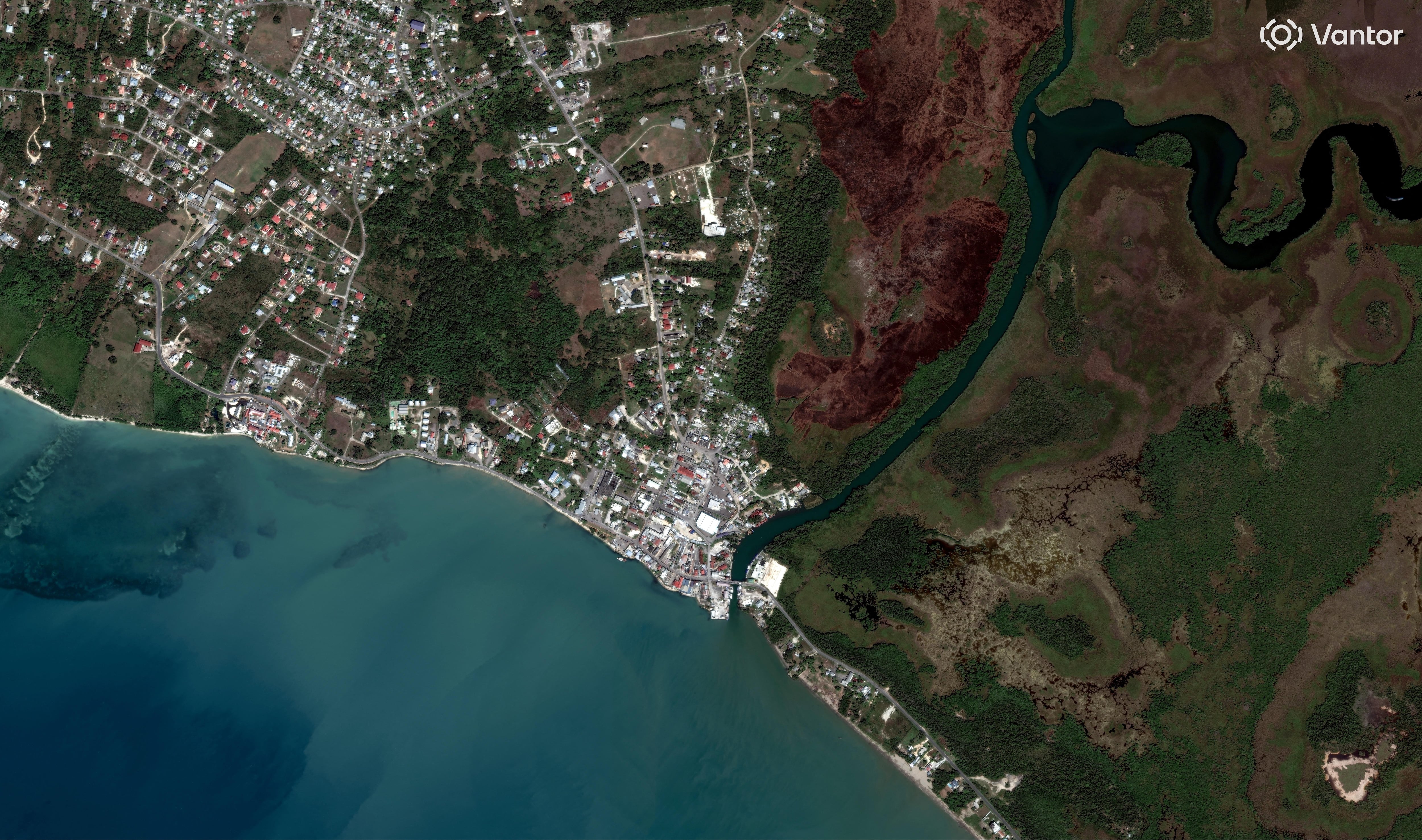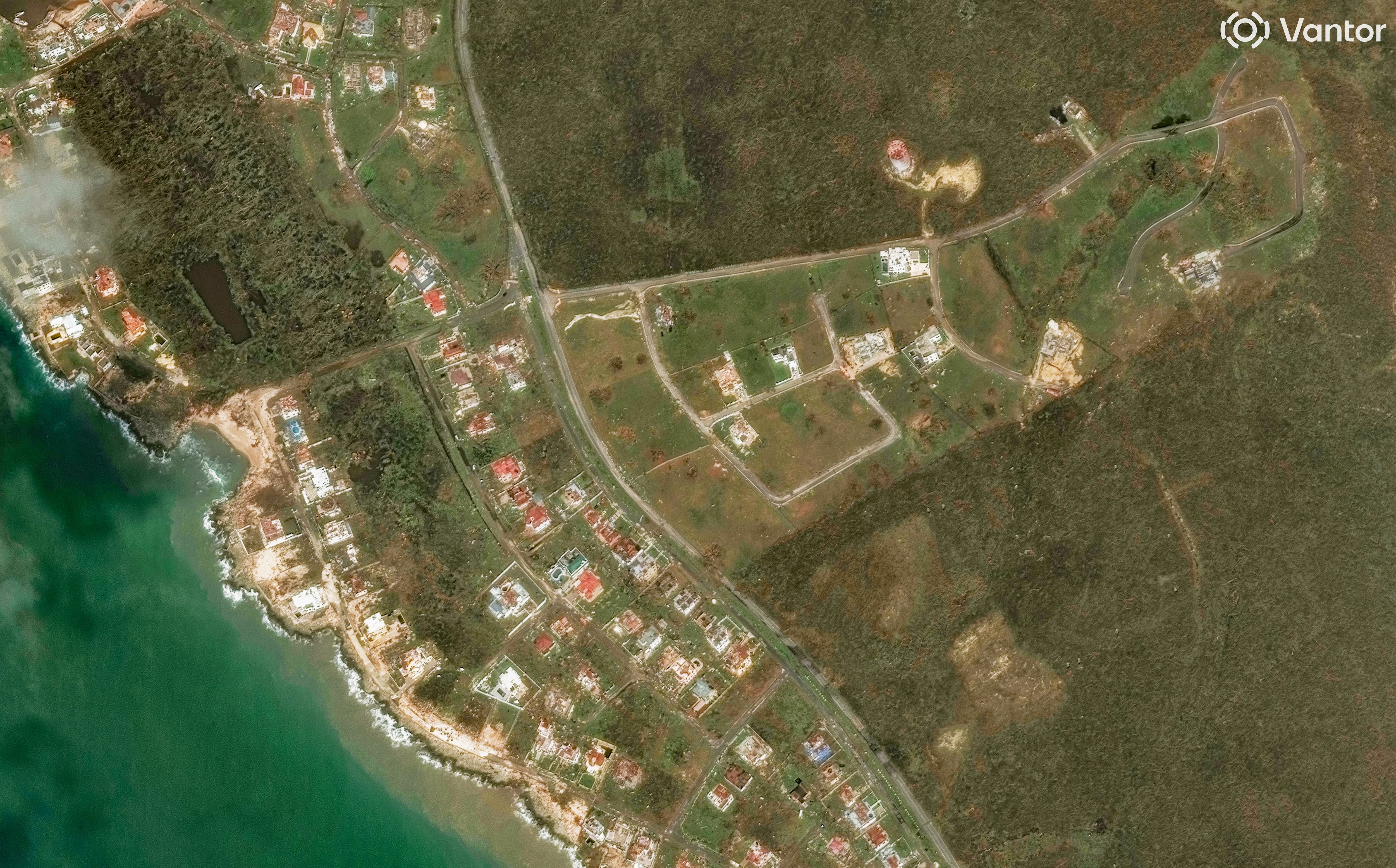 Аэрофотоснимки, полученные Вантор Они предлагают первый взгляд из космоса на ущерб, причиненный самым мощным штормом, обрушившимся на остров в современной истории. На изображениях «до» и «после» запечатлены яркие сообщества, превратившиеся в неузнаваемые ландшафты из грязи, мусора и разрушений.